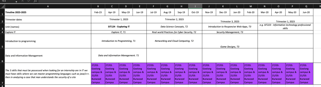 This timeline contains several units that we will take in the future with a more mature plan so that in the future we are not confused and have planned it so that it will be easier in the future. As we can see here to become an IT major we have to be able to learn all of this.